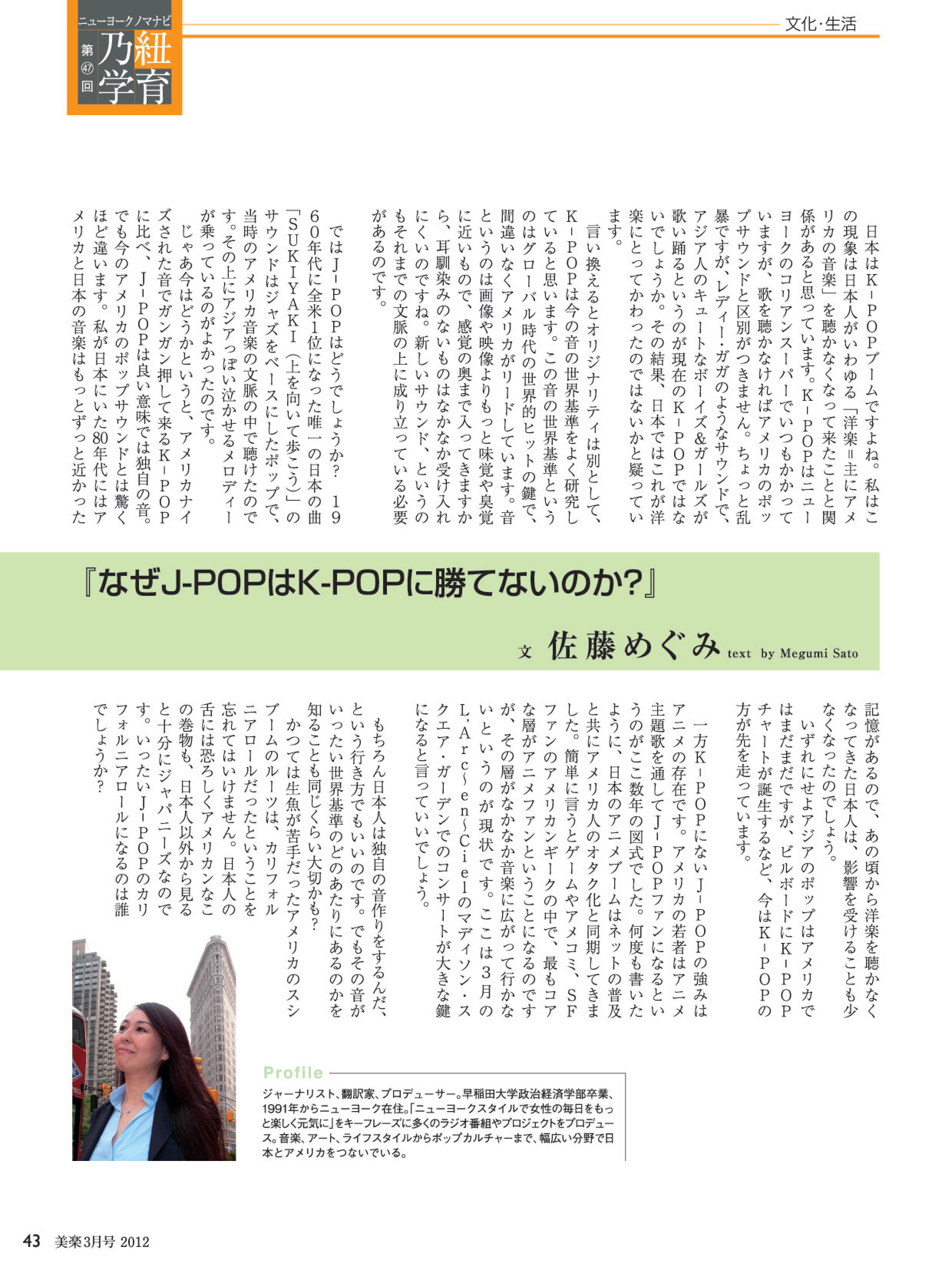 なぜJ-PopはK-Popに勝てないのか[月刊美楽3月号] アメリカで急上昇するK-POP人気。それに比べてJ-POPJの存在感が弱い理由をニューヨーク視点で分析 共有: X で共有 (新しいウィンドウで開きます) X Facebook で共有 (新しいウィンドウで開きます) Facebook いいね 読み込み中… 関連