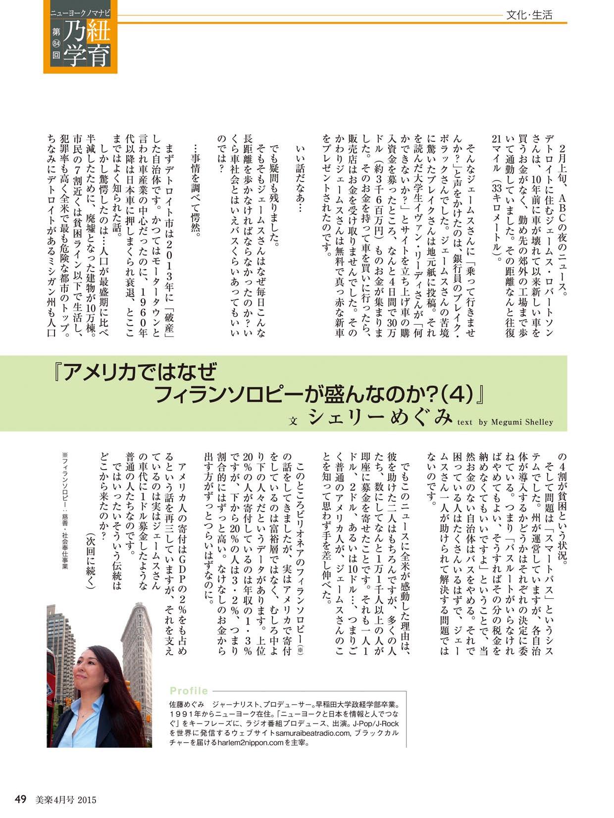 ビル・ゲイツとウォーレン・バフェットが呼びかけているThe Giving Pledge(全財産の最低半分を寄付するという誓い)に参加する形で発表してもので、facebookのザッカーバーグなどすでに100人ものビリオネアが同じ宣誓にサインしている。いったいこれが何を意味するのか、なぜ今の社会にとって重要なのか? 月刊「美楽」2014年9月号に書いた記事でぜひお読みください。(*フィランソロピー:慈善・社会奉仕事業)