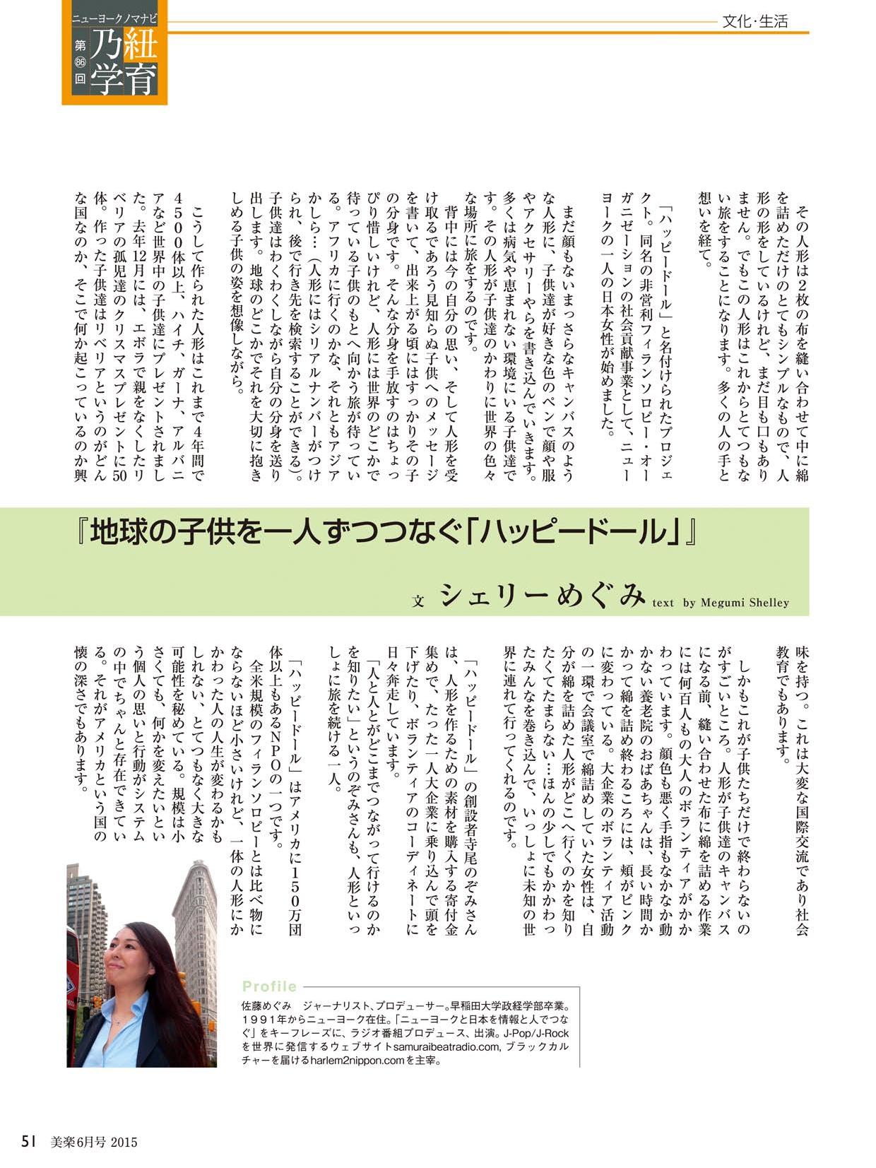 乳がん撲滅から貧困救済まで、アメリカ文化の一部になっているフィランソロピー(慈善・社会奉仕活動) 今回は日本人が登場! 良き友人でもある寺尾のぞみさんが主催する暖かいフィランソロピー「ミステリオ」が行っている世界の子供達による人形エクスチェンジ・プログラム「ハッピードール」をご紹介しています。のぞみさんご協力ありがとうございます!